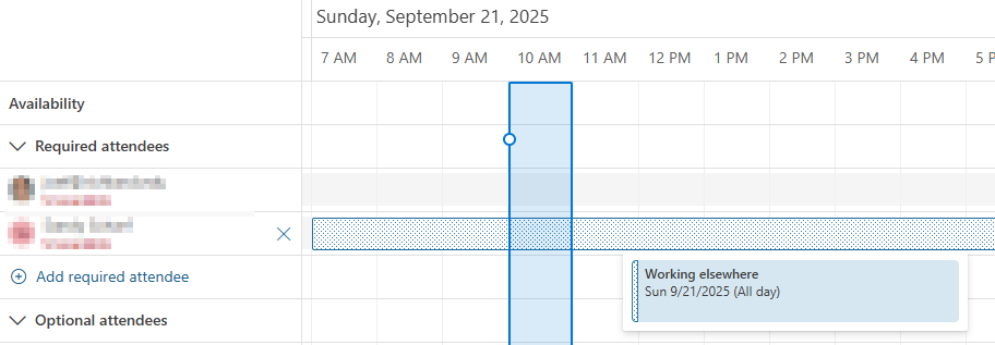 After saving your appointment, other employees will be able to view your in-person availability via the Outlook Scheduling Assistant, as shown below: